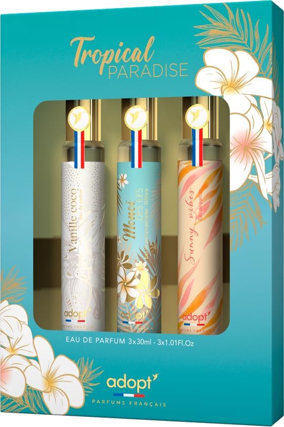 Un coffret ensoleillé réunissant trois eaux de parfum aux notes tropicales, fruitées et gourmandes. Des fragrances fraîches et exotiques à emporter partout pour une évasion parfumée à tout moment.