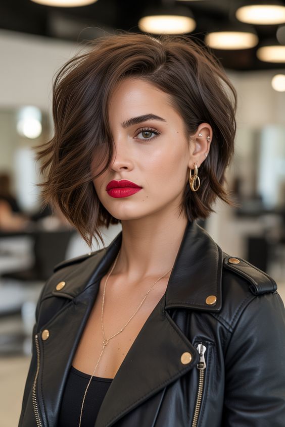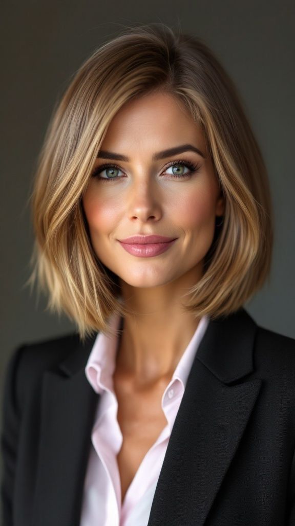Épuré et élégant, le bob droit est parfait pour un look chic et minimaliste. Il met en valeur les cheveux lisses et les traits du visage.