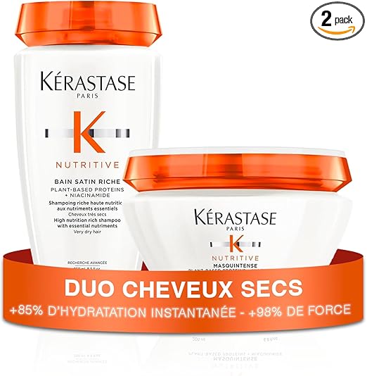 Shampoing Bain Satin Riche 500 ml + Masque Cheveux Masquintense – Apporte des Nutriments Essentiels, Nourrit Intensément & Hydrate
